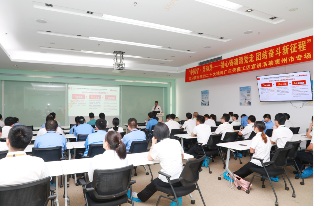 弘揚勞模精神,凝聚榜樣力量,宣講會開始前,李偉宏部長給高東斌老師頒發嘉獎證書。宣講會上,高東斌老師結合自身經歷和崗位經驗向大家講述了自己參加黨的二十大的感受和體會,并分享了過去五年惠州經濟社會發展取得的新跨越以及當前惠州石化產業發展取得的新成就。