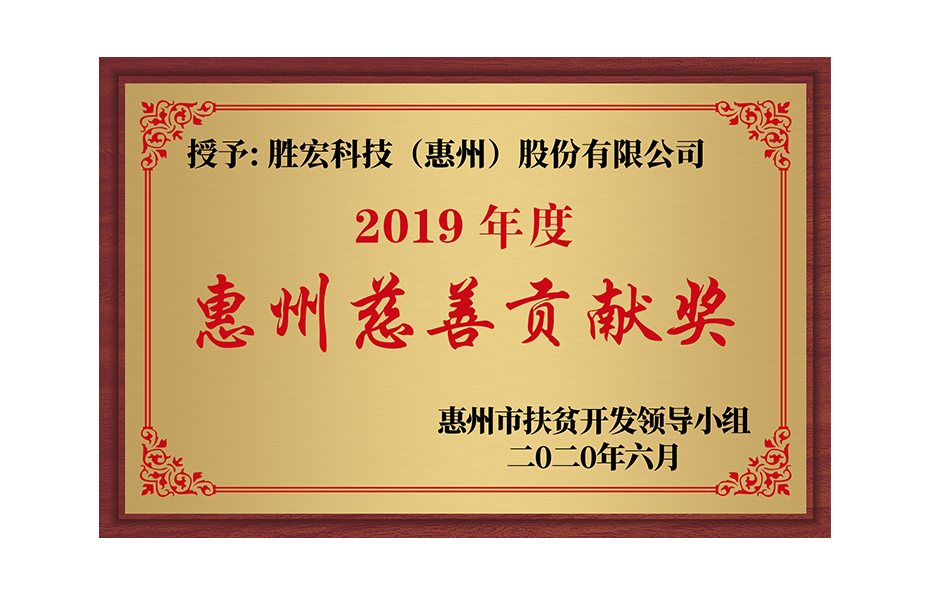 獲得2019年惠州市慈善貢獻(xiàn)獎(jiǎng)